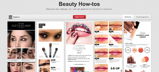 La cadena de productos de belleza Sephora tiene un tablero desde el que da consejos de cómo maquillarse. Desde un sector bien distinto, el tecnológico, la revista Techij tiene un tablero en el que enseña cómo enviar mails encriptados o cómo hacer llamadas gratuitas desde el navegador. Aún más sorprendente es el tablero "How to" de la revista Surfer Magazine que enseña cómo coger bien una ola, claro, pero también otros consejos más insospechados, por ejemplo, cómo puede ayudar el yoga a los surferos.